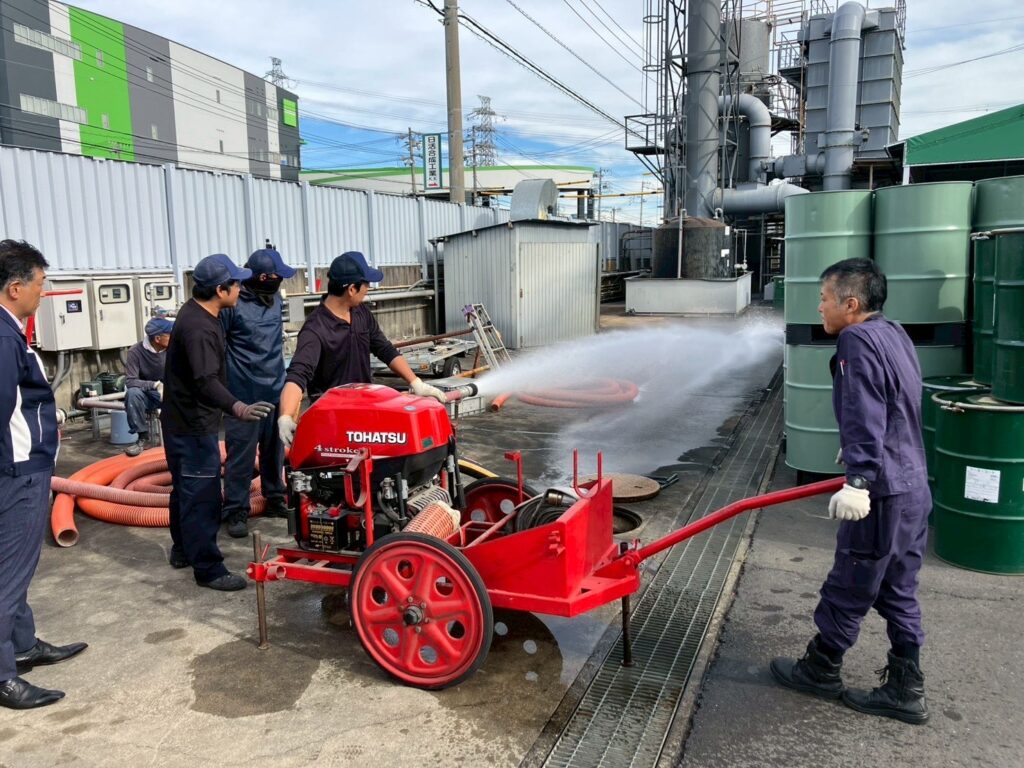 放水車の使用方法とホースの連結方法に関して、実習訓練を行いました。